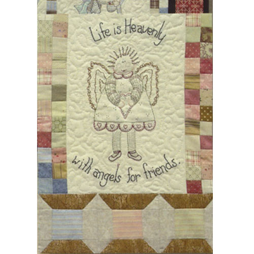 Block 3 - Angels for Friends - block size: 14" X 12". Six patterns make up this stitchery block of the month collection. Each angel has it's own charming personality. Finished size is 43" x 45". Designed by Dougal Ann Walker