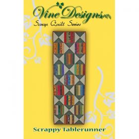 Use 1 ½” strips to make one block and quarter squares for another and then alternate the blocks to make a lantern shape. The table runner measure 15 inches x 35 inches. Charm squares, scraps or Honey Buns™ give variety to the strippy block. Designed by Cathy Frick