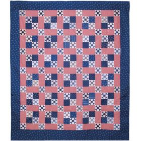 This lap-sized quilt contains 3" shoofly blocks used in the 4-patch units and setting blocks. It is easily assembled using rotary cutting and strip-piecing techniques. The tiny blocks dancing across the quilt top remind me of musical notes in the songs that my oldest son, Tim, writes and sings. Finished size: 56" x 65" Designed by Carol Hopkins